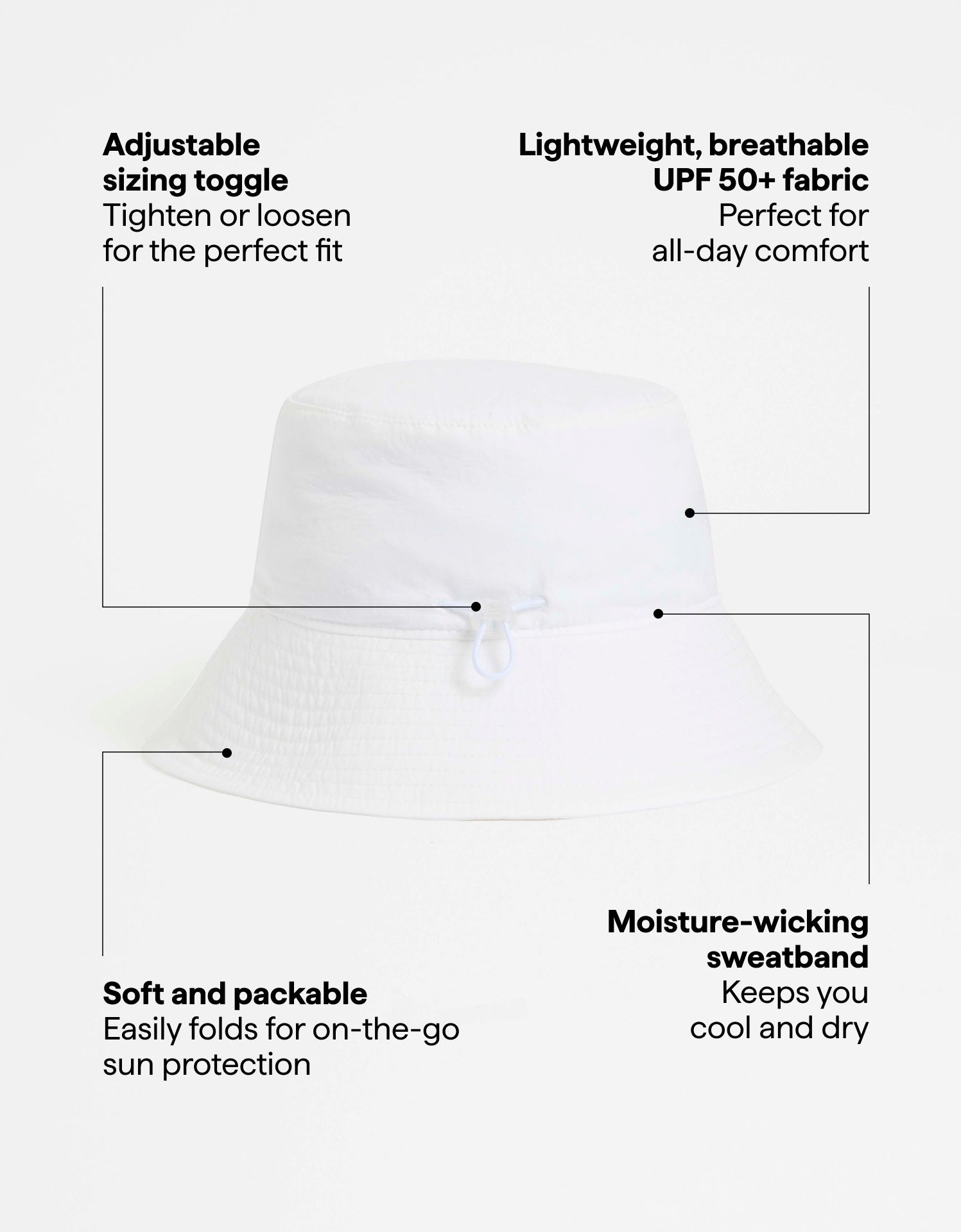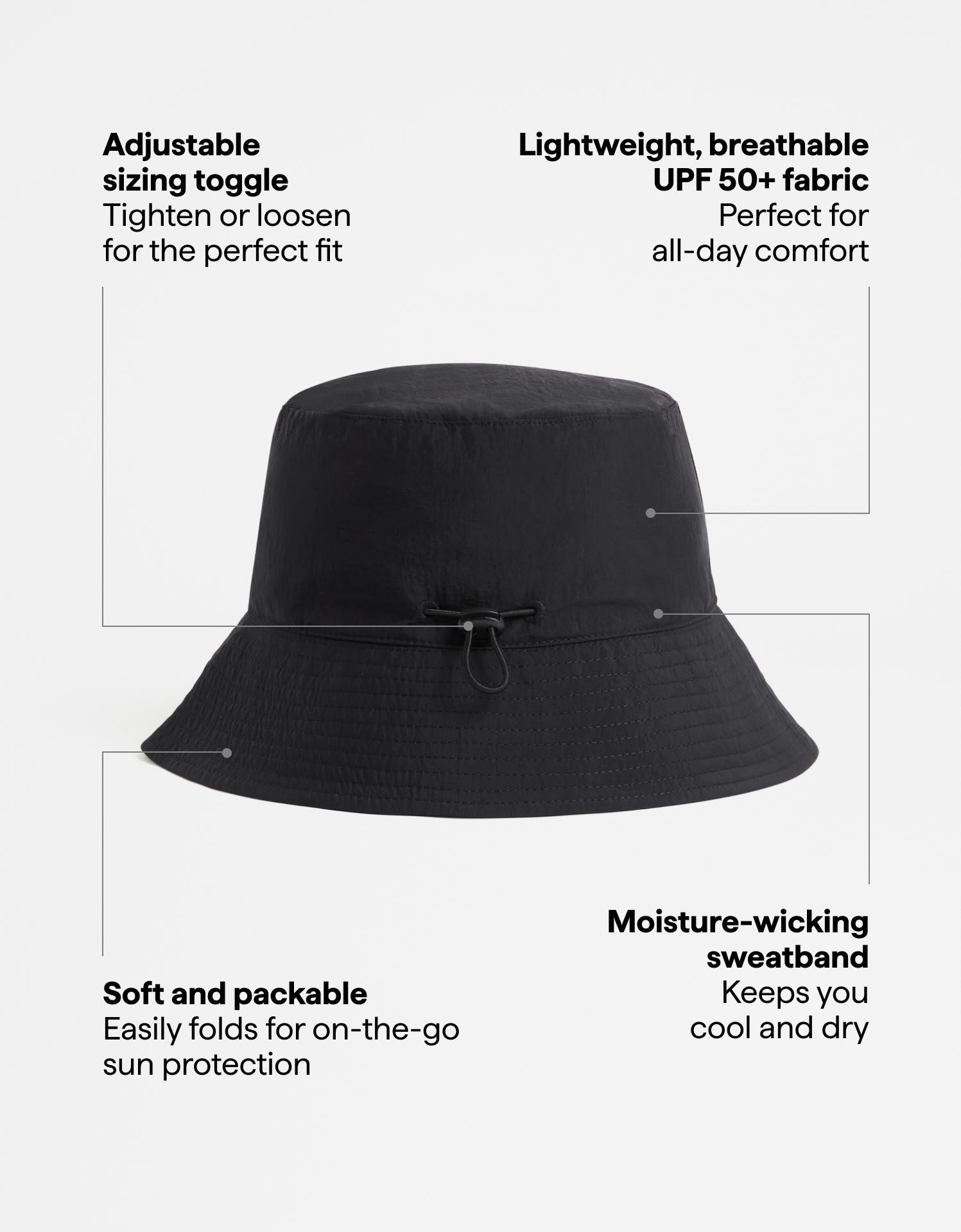 Crafted from soft, lightweight fabric, this bucket hat is exceptionally comfortable, and durable. It folds down easily for convenient storage in your bag.