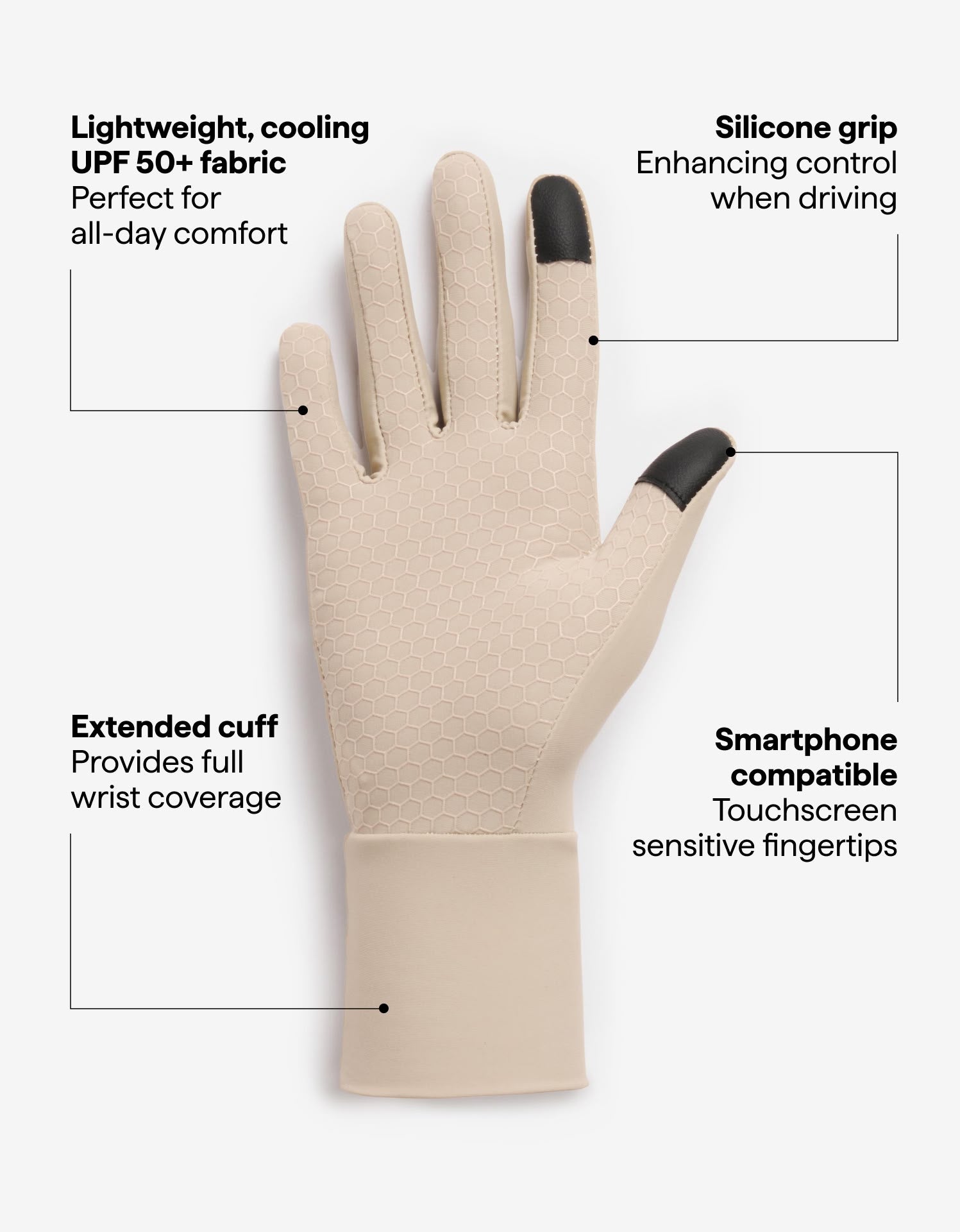 Our Sun Protective Driving Gloves for women offer certified UPF 50+ protection, breathable cooling fabric, and a silicone palm grip for comfort and control, ideal for daily drives and long road trips.