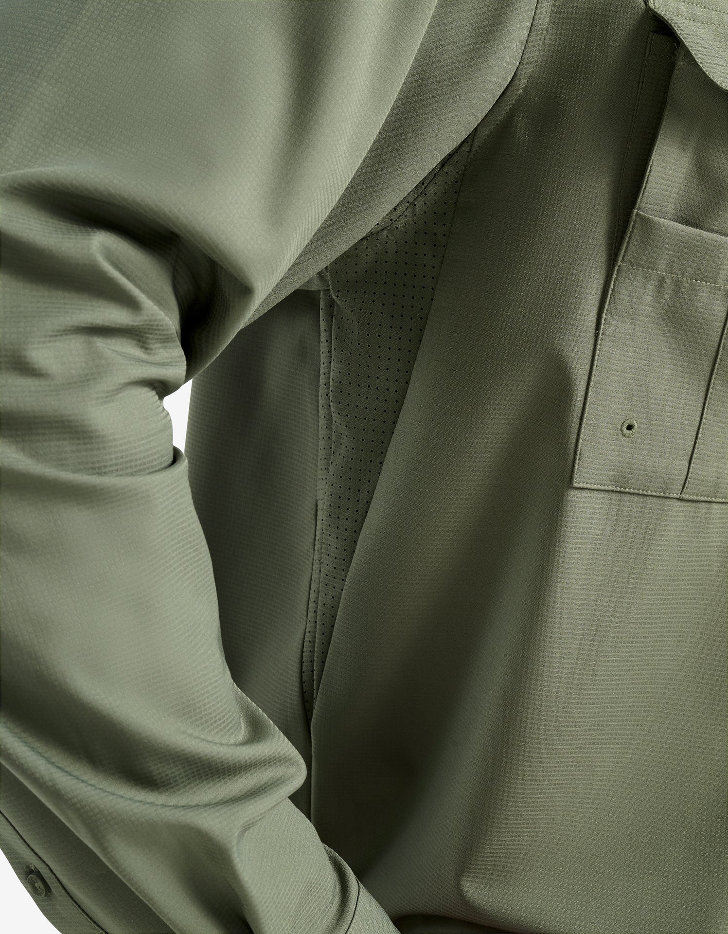 Our UPF 50+ Hiking Sun Shirt for men is ideal for outdoor activities, such as walking, hiking, fishing, and gardening. Made from eco-conscious fabric, it’s lightweight, quick-drying, moisture-wicking, and features a four-way stretch design with roll-up sleeves. The front pockets provide ample storage for essentials during outdoor activities.