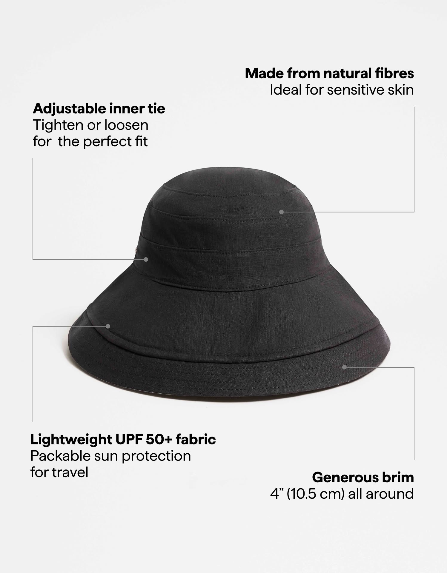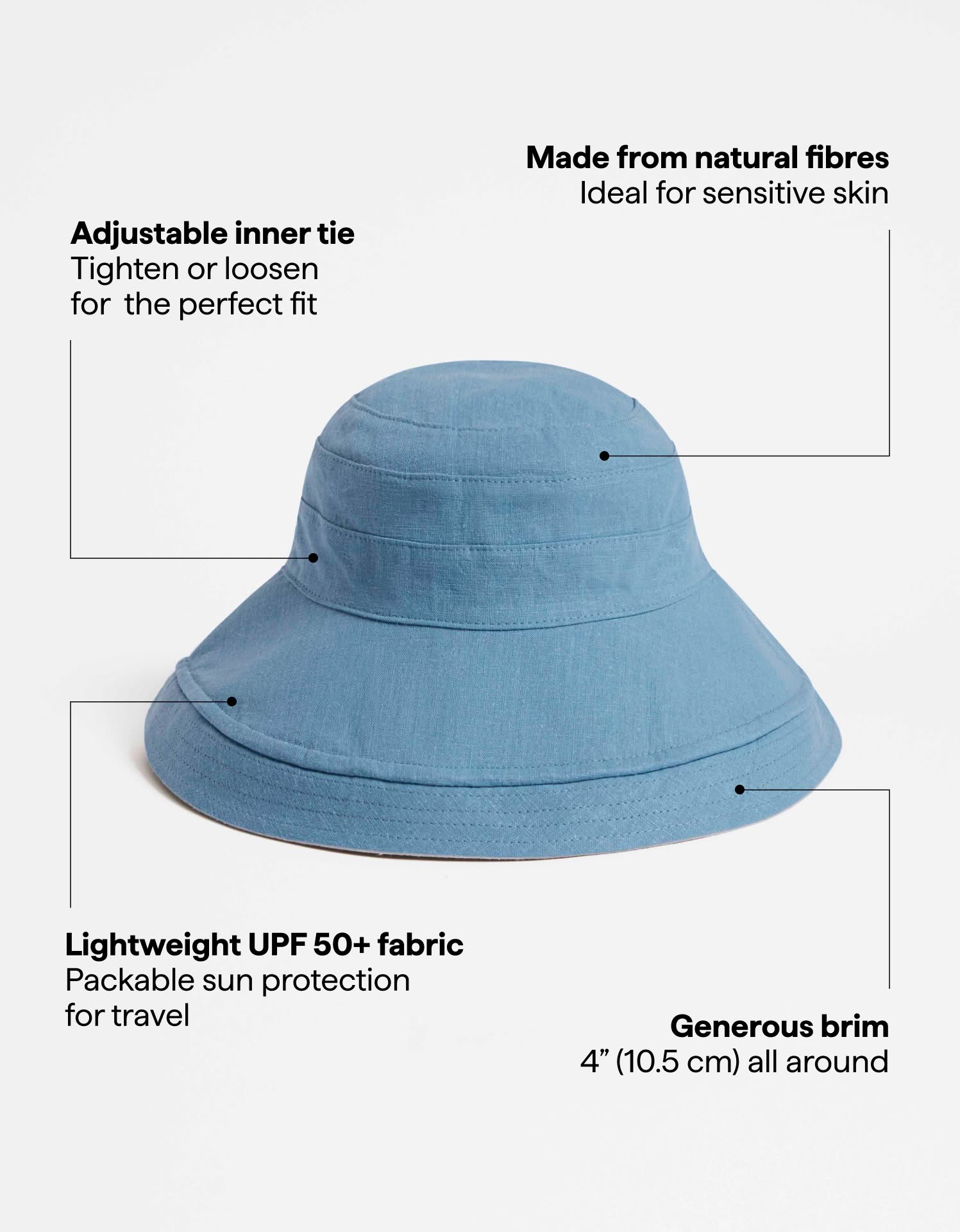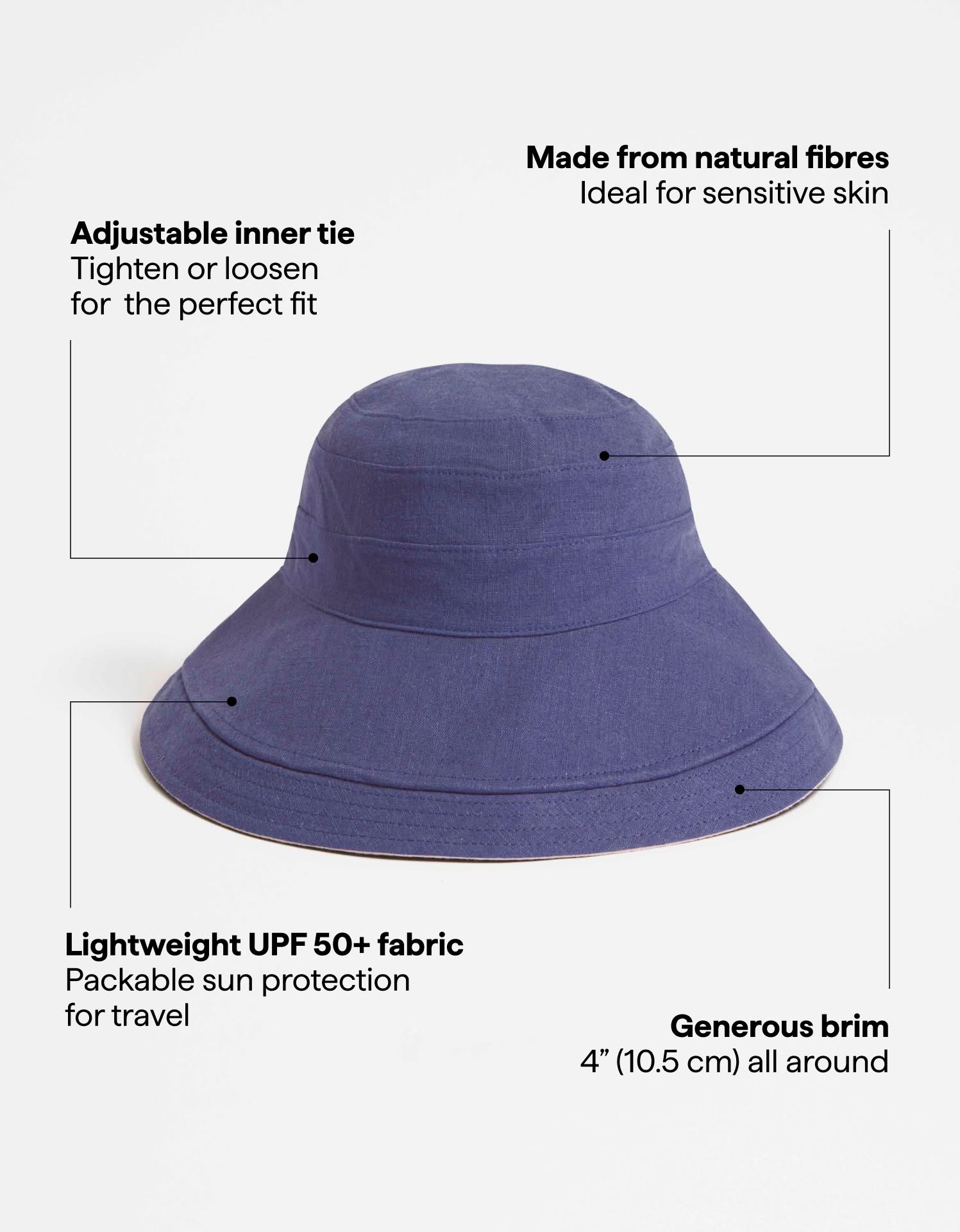 Our Holiday Sun Hat offers generous coverage with effortless style. Featuring an internal wire, the 4" (10.5 cm) brim is fully flexible and shapeable for a personalised look.