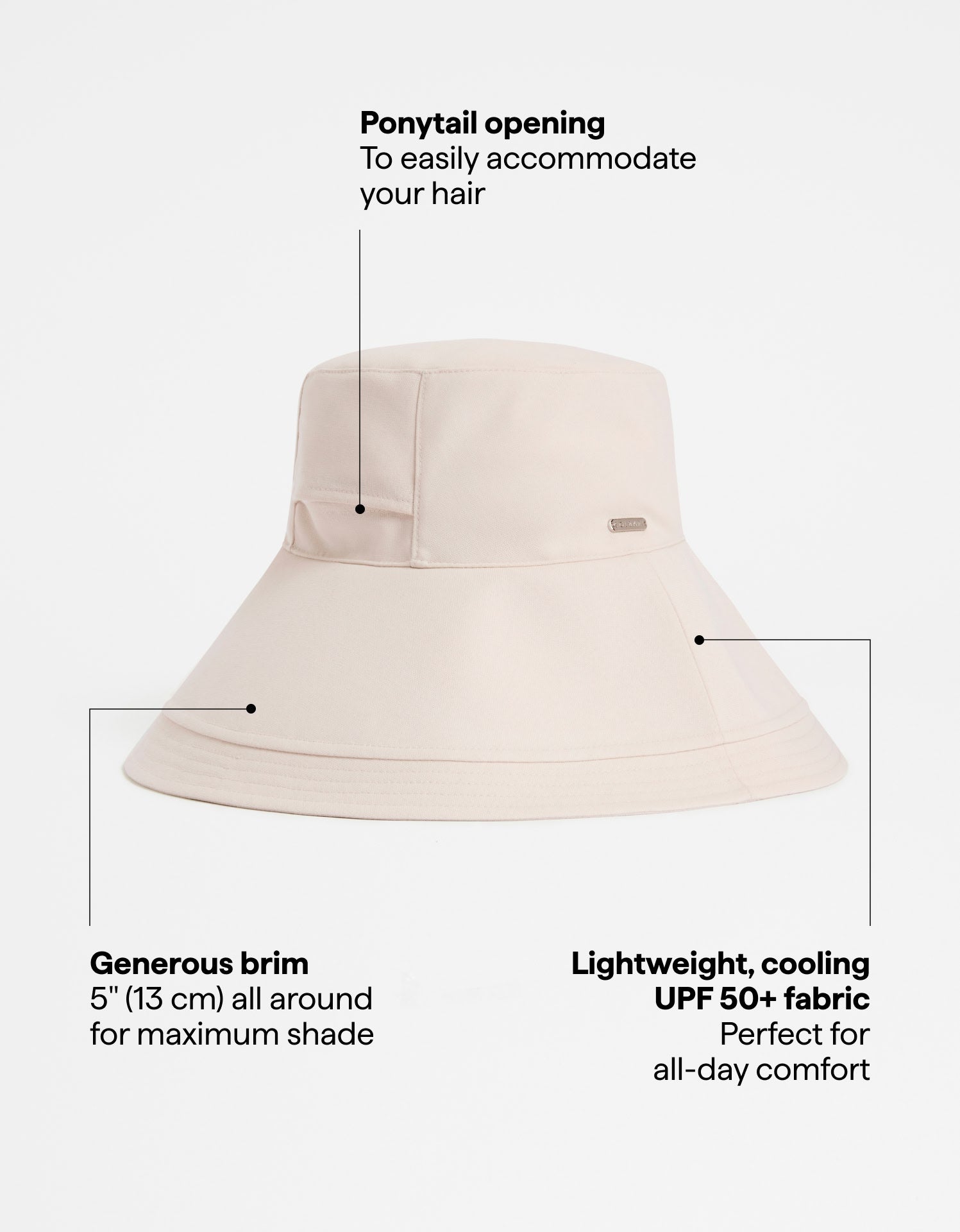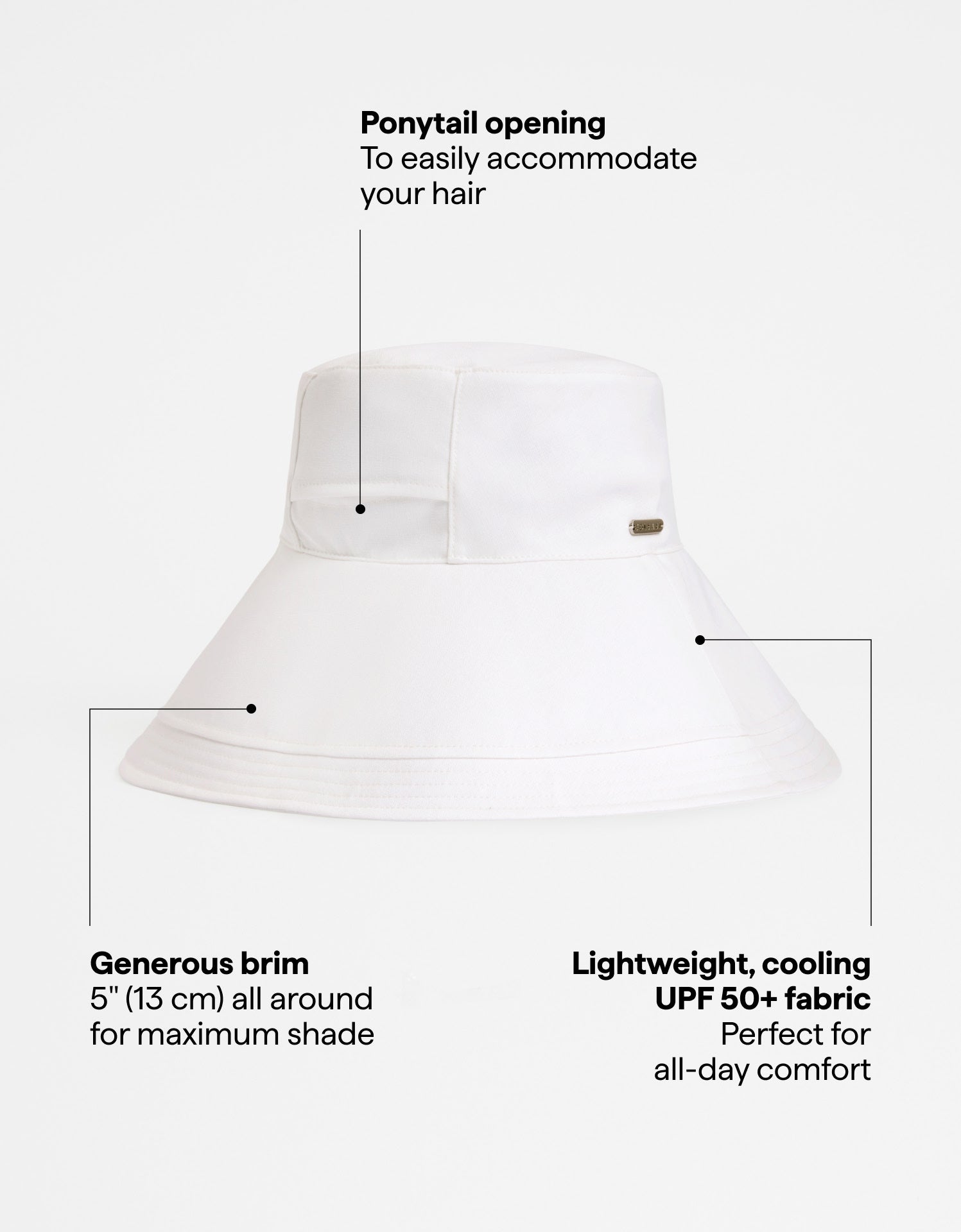 Take the shade with you in our stylish Summer Ultra Wide Brim Sun Hat. The generous 5" (13 cm) brim, crafted from certified UPF 50+ fabric, offers excellent sun protection for your face. It's feature-packed with an adjustable internal strap for customised sizing, a removable chin strap to keep the hat secure, and a discreet ponytail opening at the back.
