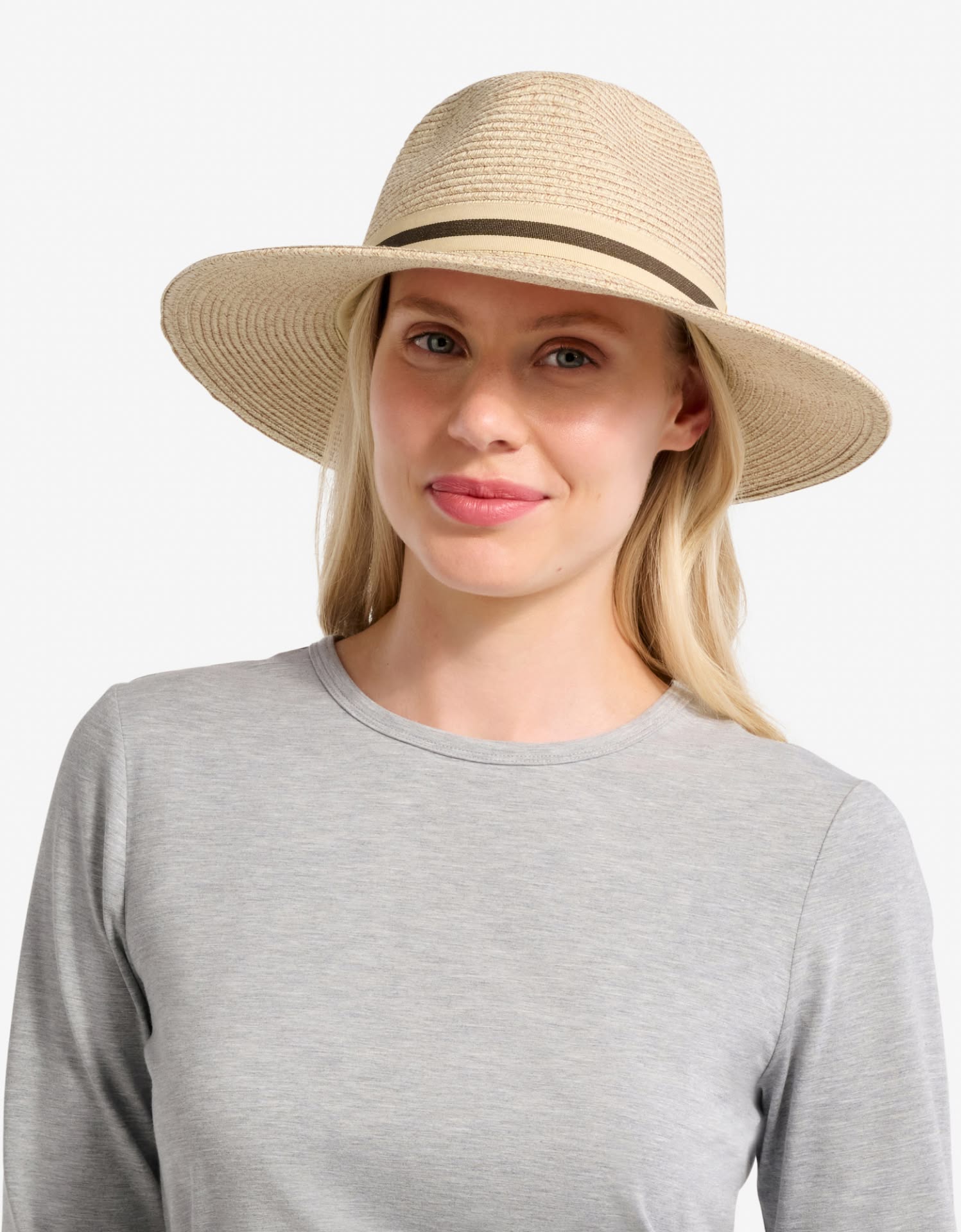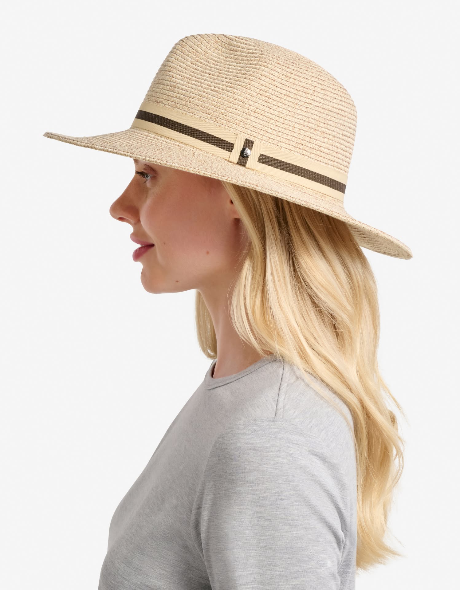 • Where effortless style meets premium sun protection. Tonal grosgrain ribbon detailing completes the hat’s elevated look.