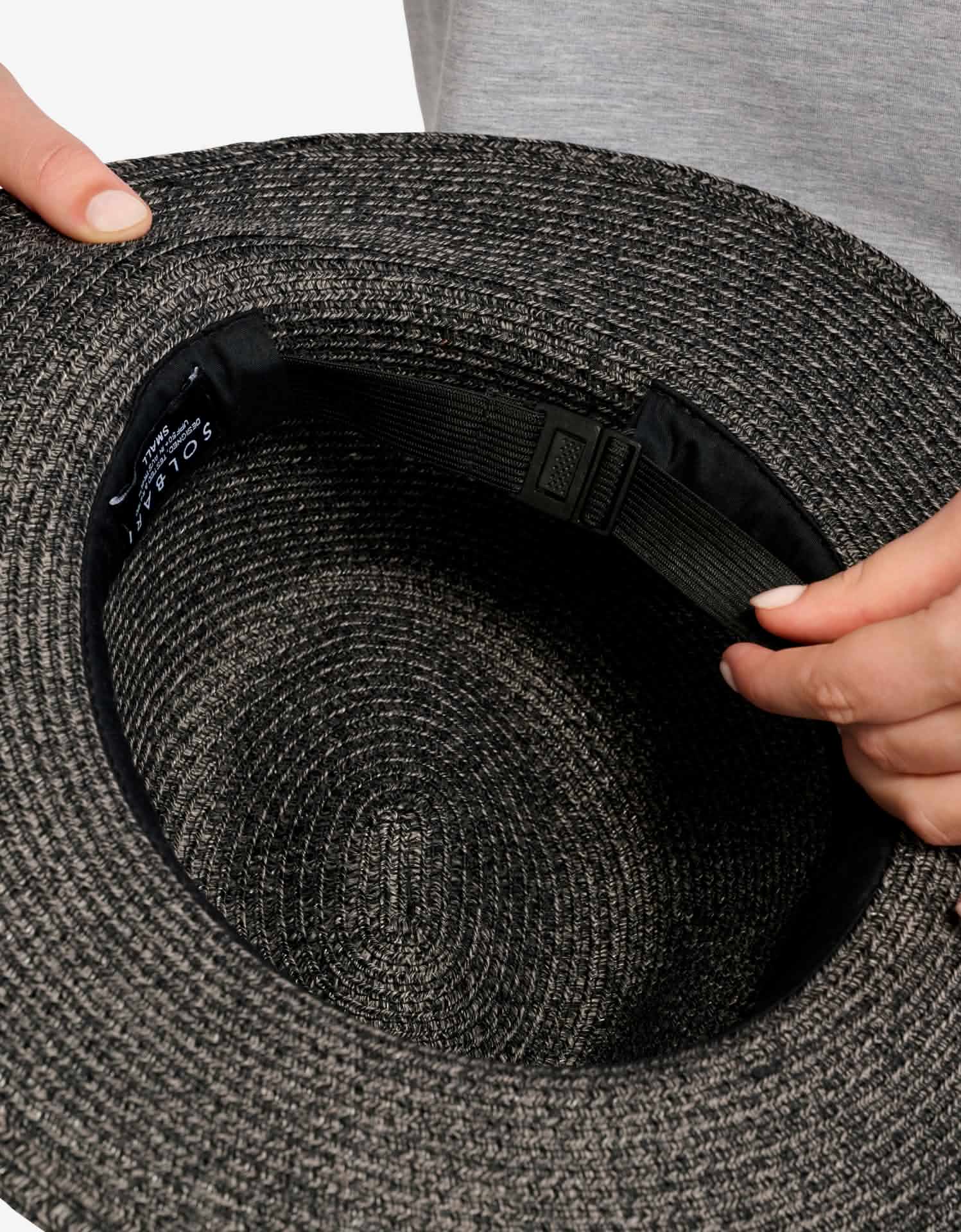 The Weekender Panama Style Hat brings together UPF 50+ sun protection, comfort and style. A discreet internal size adjustor ensures a secure, comfortable fit, while the flexible brim provides shade and protection from harmful UV rays. Styled with a tonal ribbon and Solbari metal pin, the Weekender Panama Style Hat adds a flattering finish for all occasions.