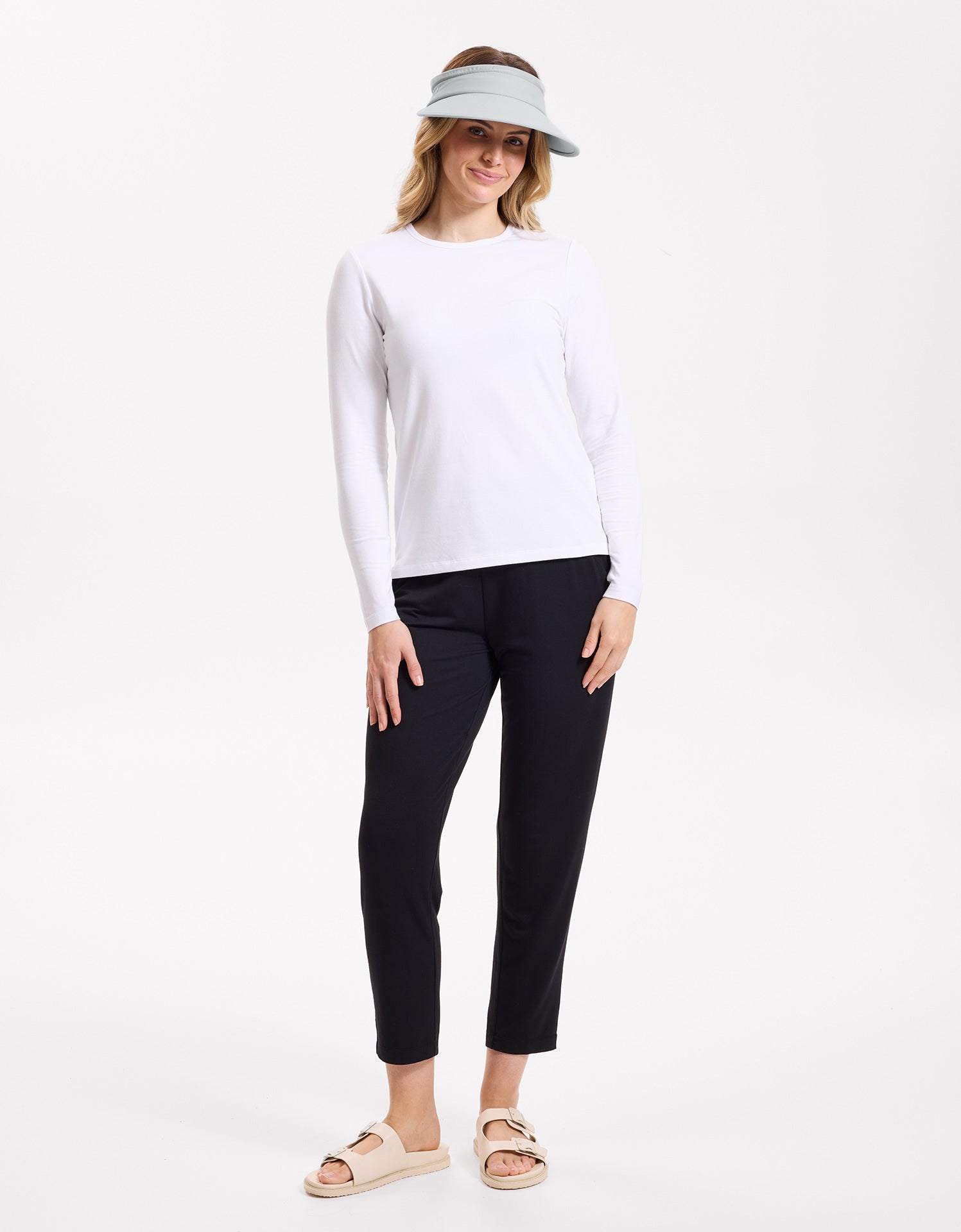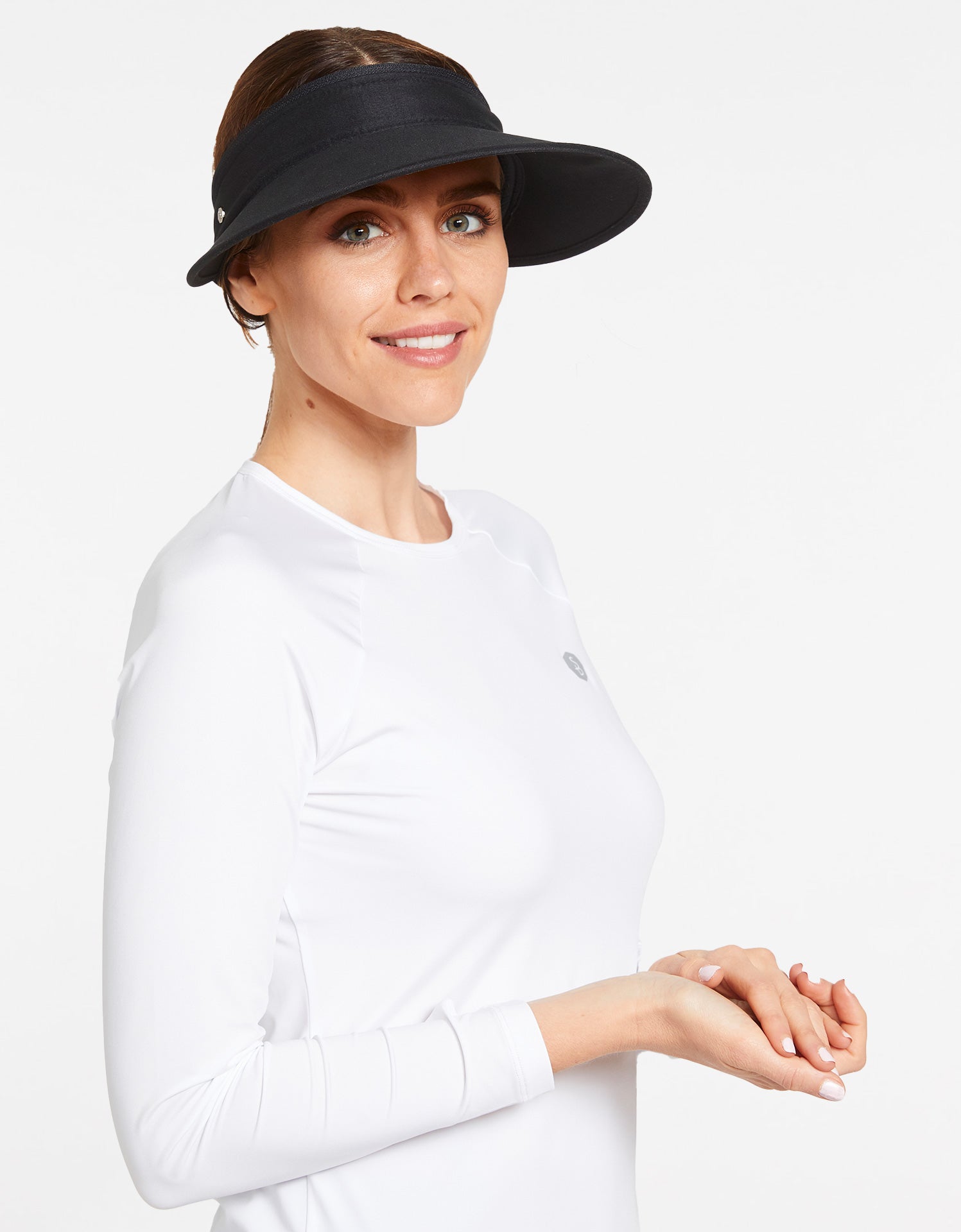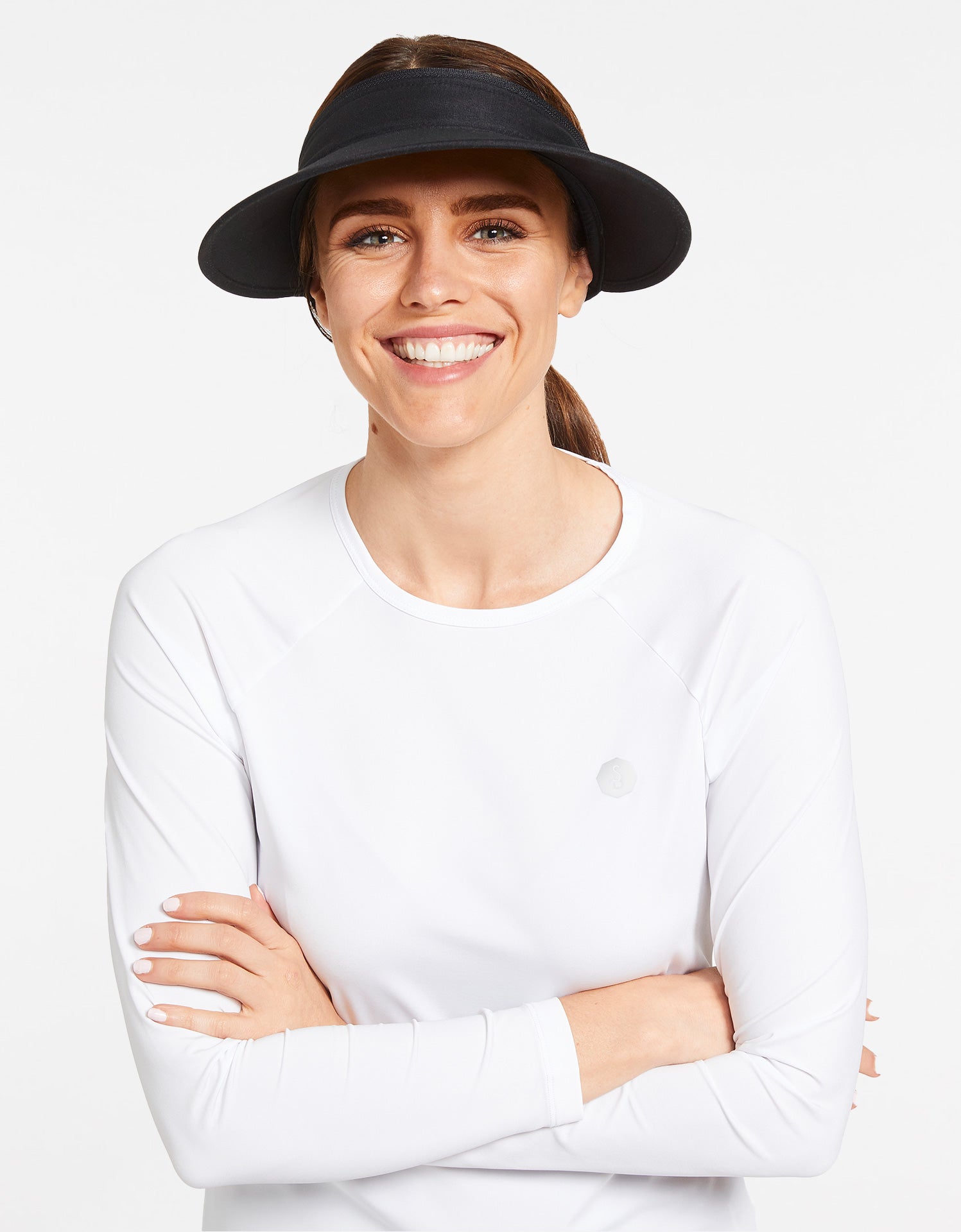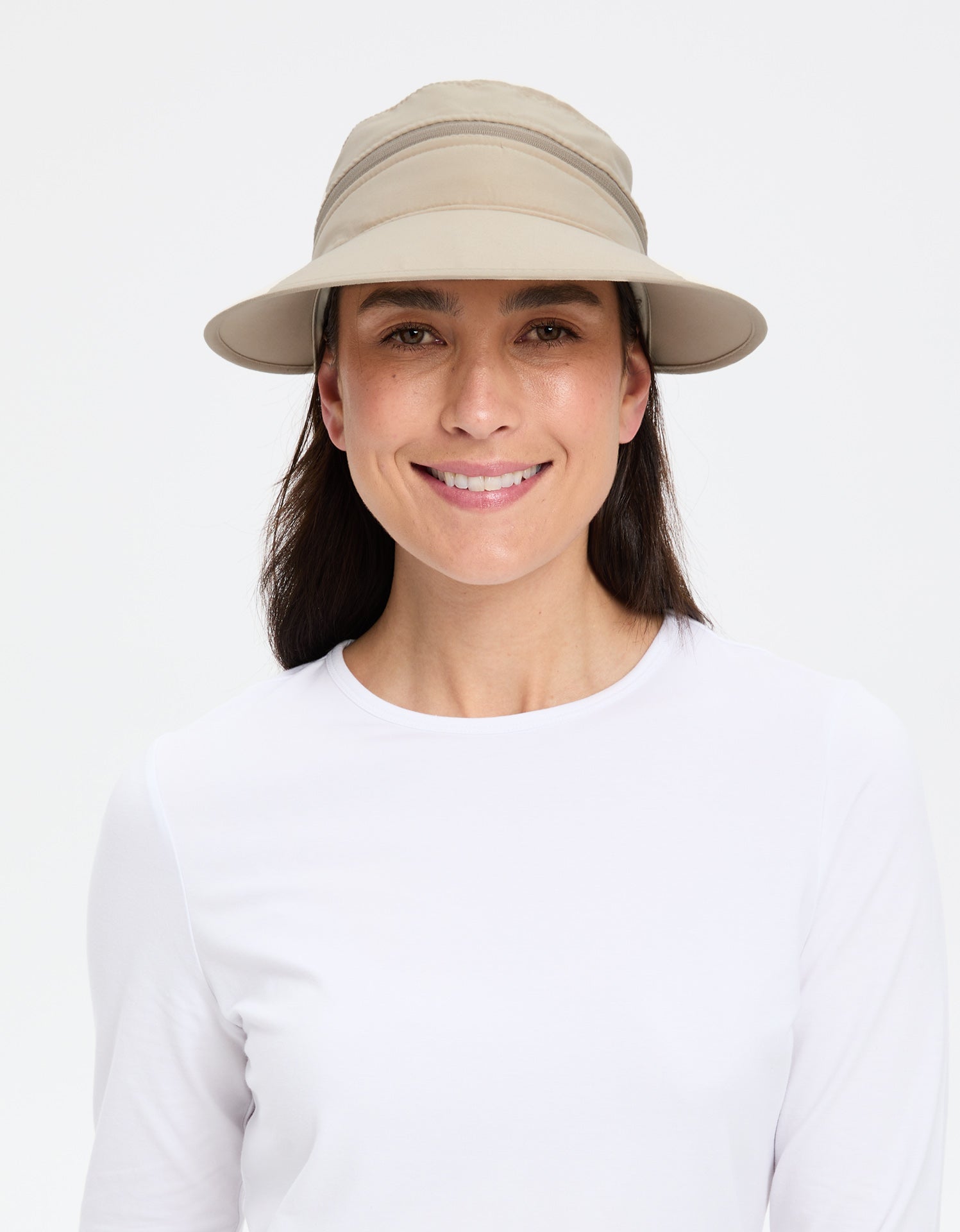 Our convertible Wanderlust Visor can be worn as a cap or visor by easily unzipping the top section. The visor provides sun protection with a 3.5" (9 cm) brim at the front. It features a moisture-wicking sweatband and an adjustable strap.